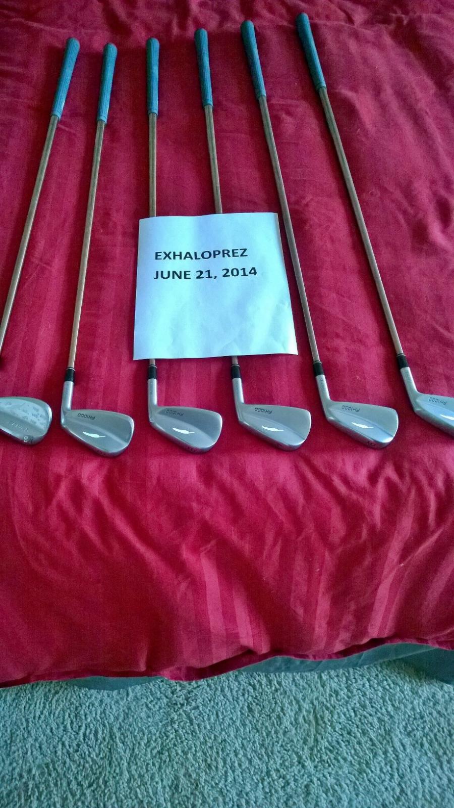 June 21, 201411 yr Fourteen FH-1000 forged irons 5 thru PW. Please note PW is a Fourteen RM 12 47 degree wedge. All irons with TT Monaco X steel shafts. No dings or chips just mild bag chatter. Always had iron covers on the heads. $750. PayPal only and includes shipping in CONUS.